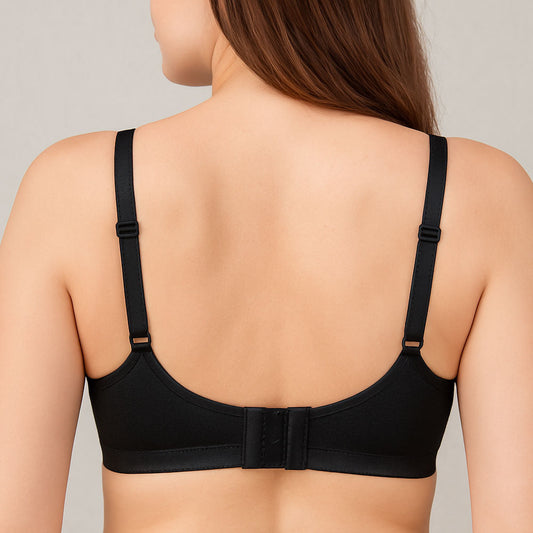 Velvy Wire-Free Cotton Bra – Double-Layered, Moulded Cups, Full Coverage | Black